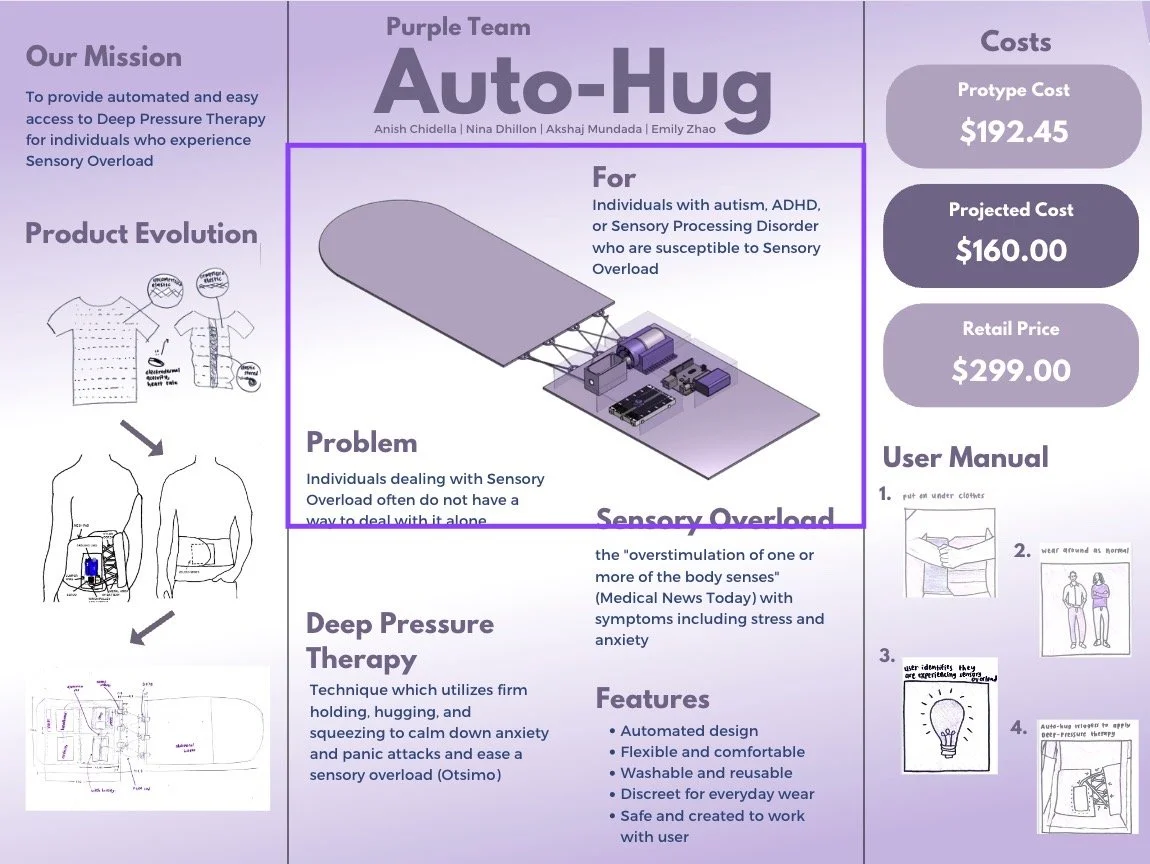 Create a wearable automatic compression device for individuals experiencing sensory overload, incorporating deep pressure therapy principles.
